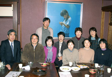 昨年のお正月、たまたま三重町にいたクラスメイトで簡単な集いを開きました。その時の様子が左の写真です。誰がだれだかわかりますか?(ヒント:額の中の少女はクラスメイトではありません)