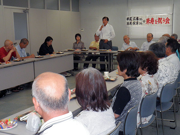 乾杯のあと一人ひとり自己紹介しながら、お祝いのあいさつ・歌などで歓談しました。私もお祝いのあいさつをしました。